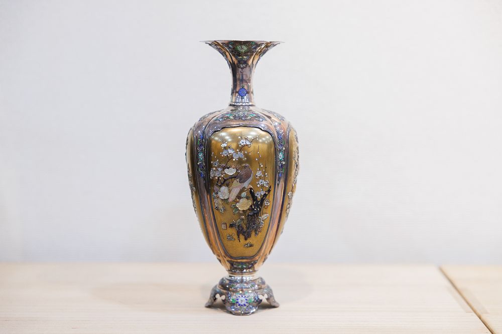 その他、茶道具に、建窯の天目茶碗・珉平焼の茶碗、一后一兆作の棗・若島宗斉の棗、角谷一圭作の茶釜、他に青銅器、陶器、蒔絵としては、谷田忠兵衛、飯塚桃葉、輪島塗では、若島宗斉の仏画蒔絵、西塚栄治、池口美樹、沈金の前古清玉、松田清風、金地の蒔絵「阿古陀香炉」と芝山象眼の銀花ビン、13代酒井田柿右衛門の陶板・風鎮を展示。